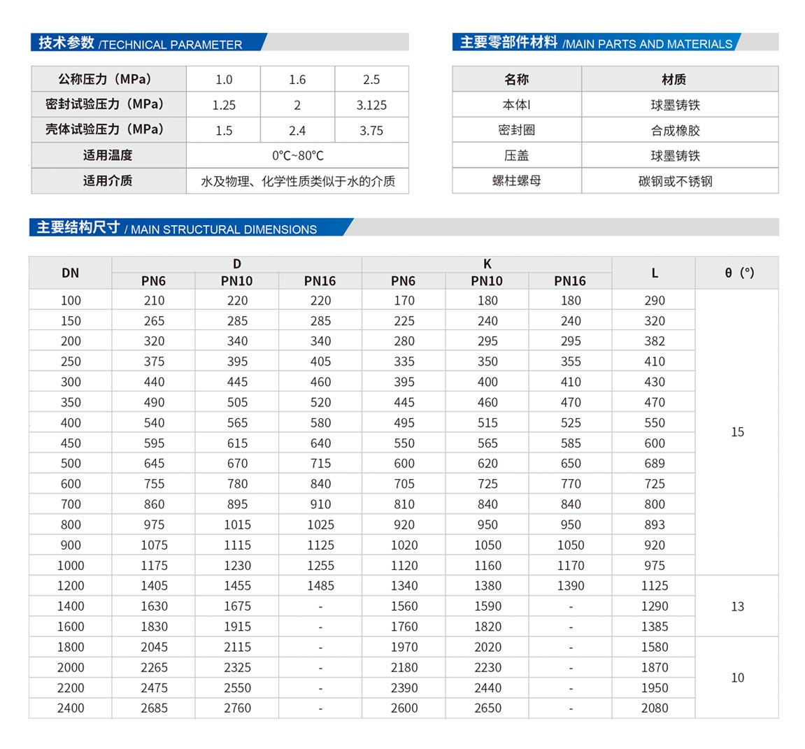球形補(bǔ)償接頭主要適用于地面沉降大、震動(dòng)大、地形復(fù)雜的管道連接。安裝在管道上后,球體可以以回轉(zhuǎn)中心在θ角范圍內(nèi)自由轉(zhuǎn)動(dòng),來補(bǔ)償管道因地基沉降、熱脹冷縮引起的撓曲。具有補(bǔ)償量大,占據(jù)空間小,流體阻力小,安裝方便,綜合成本低等優(yōu)點(diǎn)。