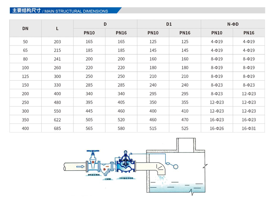 該閥門能有效地控制水塔或水箱液面,適時切斷或打開閥芯輸入水充或阻止水流外泄。液位控制準(zhǔn),水位不受壓力波動干擾,開團緊密不漏水,浮球靈活,維護保養(yǎng)簡單(控制球閥可與主閥分離安裝),適用于工礦,企業(yè),高層建筑中的水箱,水池,水塔的自動供水系統(tǒng)。