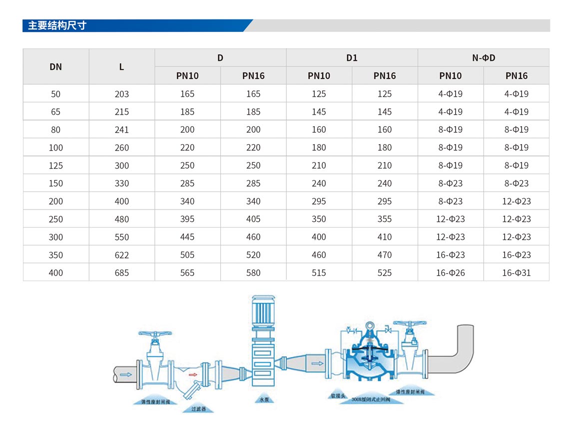 具有開(kāi)啟和關(guān)閉速度調(diào)控的逆止閥,于啟動(dòng)或停止抽水機(jī)運(yùn)轉(zhuǎn)時(shí),可配合現(xiàn)場(chǎng)調(diào)節(jié)至開(kāi)啟或關(guān)閉速度??捎糜诟邔咏ㄖ瑴p少水錘及水聲現(xiàn)象產(chǎn)生,以達(dá)安靜關(guān)閉之效果。